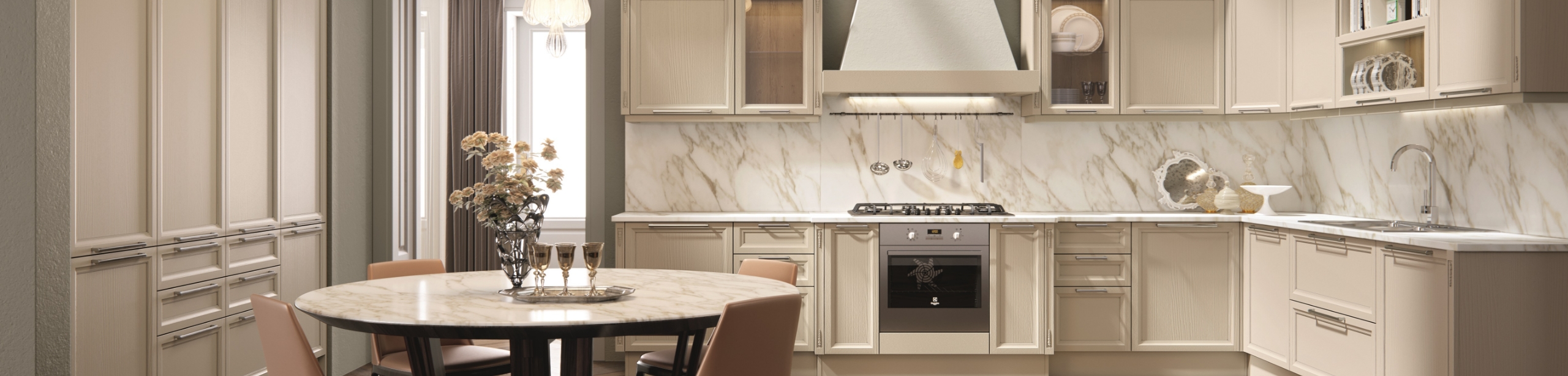 L’ampia gamma di finiture e l’elegante profilo di quest’anta in legno a 5 pezzi permettono al modello ASTI di adattarsi tanto a stili tradizionali che ad ambienti più moderni.